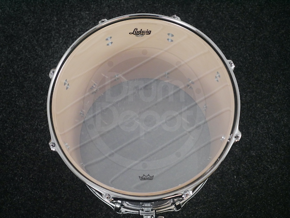 - Bearing Edge – Each drum’s bearing edge is cut to a 45-degree angle within 1/16″ from the outside edge. This profile is critical for a wide tuning range, and maximum sustain. The edge is hand-sanded to the craftsman’s touch to assure a smooth, even, flat surface for easy head seating; the final touch to complete the unmistakable Ludwig Sound.